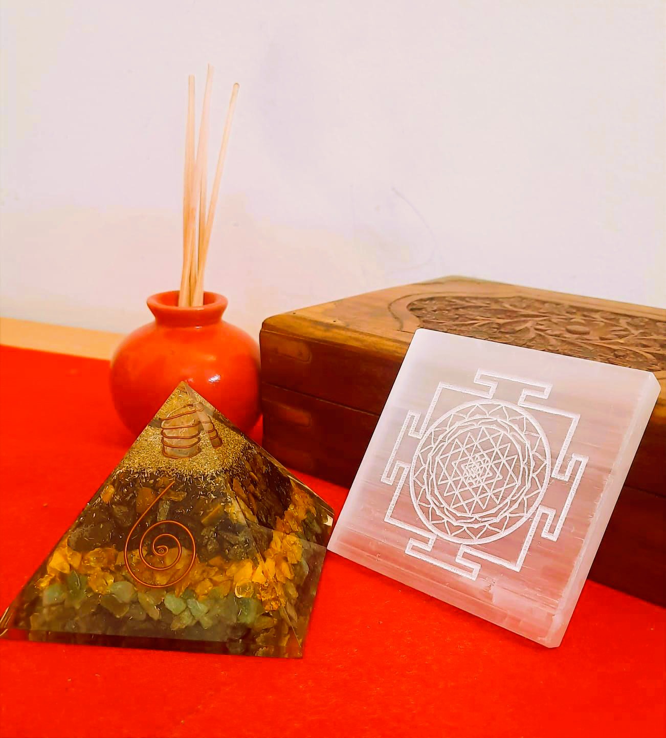 The Money Magnet Pyramid with Shree Yantra Selenite Plate is not just a decorative piece – it is a spiritual tool for manifesting wealth, removing obstacles, and inviting divine prosperity. 🌟
