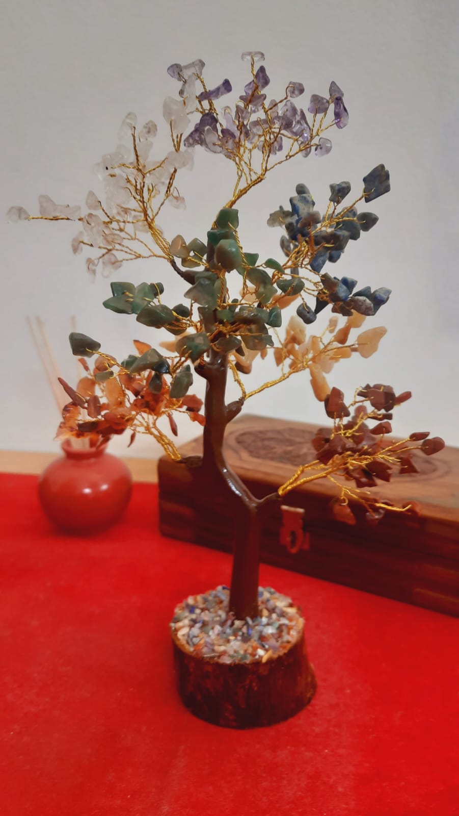 The Seven Chakra Tree with 300 natural crystal beads is a powerful energy tool designed to balance, align, and heal the seven chakras of the body. Each bead corresponds to a specific chakra, restoring harmony and positivity in your surroundings while promoting abundance, health, and spiritual growth.